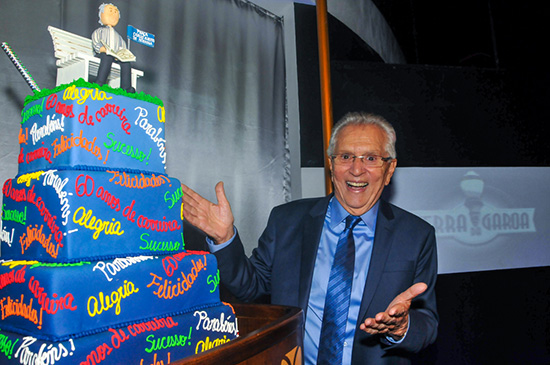 Ao final do musical, muita emoção! Carlos Alberto primeiramente subiu ao palco para receber o "Título de Cidadão Paulistano" através do vereador Dr. Marco Aurélio Cunha. Em seguida, foi surpreendido por um vídeo do SBT, em homenagem aos 60 anos de carreira. E para coroar a noite festiva, é claro, o bolo. Criado por Amanda Bryant, da Sucre et Salé, trouxe a tradicional imagem do apresentador lendo jornal, em seu banco da praça.