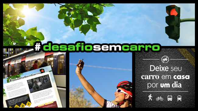 O portal CicloVivo lança a campanha #desafiosemcarro durante o mês da mobilidade urbana. A ação visa incentivar as pessoas a deixarem seus veículos em casa e utilizarem o transporte público ou adotarem meios alternativos de locomoção, como bicicleta, skate e patins, entre outros.