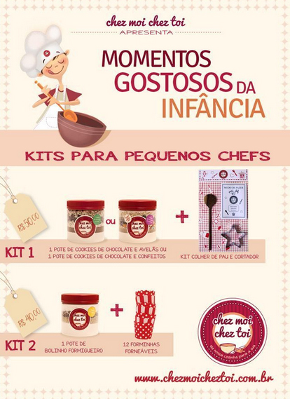 A Chez Moi Chez Toi, empreendimento gastronômico especializado em misturas pré-preparadas de cookies, brownie, bolinho formigueiro e chocolate quente, lança kits especiais para o Dia das Crianças. Os pequenos Chefs poderão escolher entre três opções para preparar deliciosas receitas com a família.