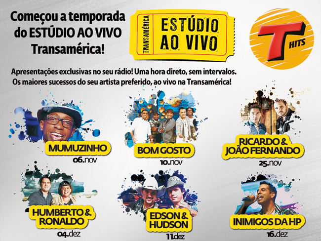 A temporada do Estúdio ao Vivo da Transamérica Hits segue até o mês de dezembro com apresentações exclusivas de artistas consagrados.