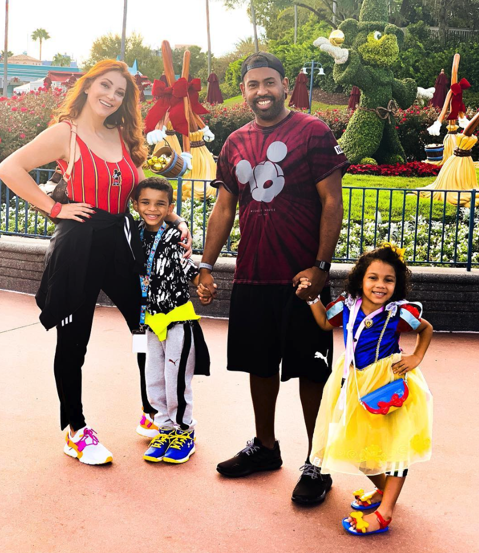 | Cintia com o marido, Diego Fortes, e seus filhos em Orlando, Florida |