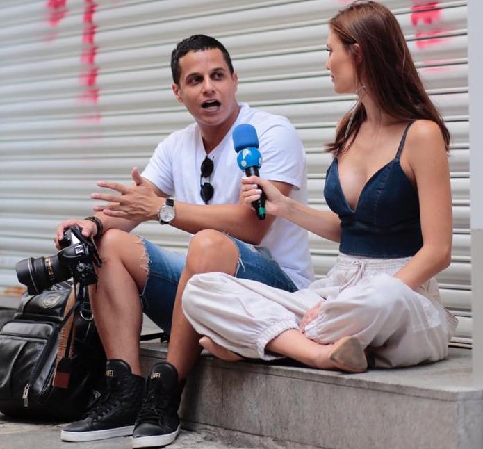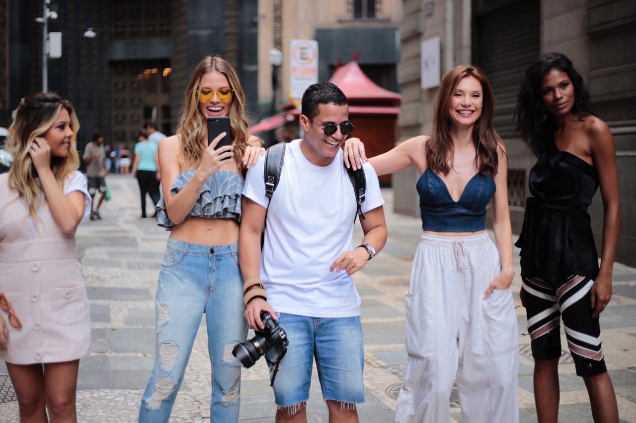 | Emerson Lima com top models no centro de São Paulo para a "Saída Fotográfica" |