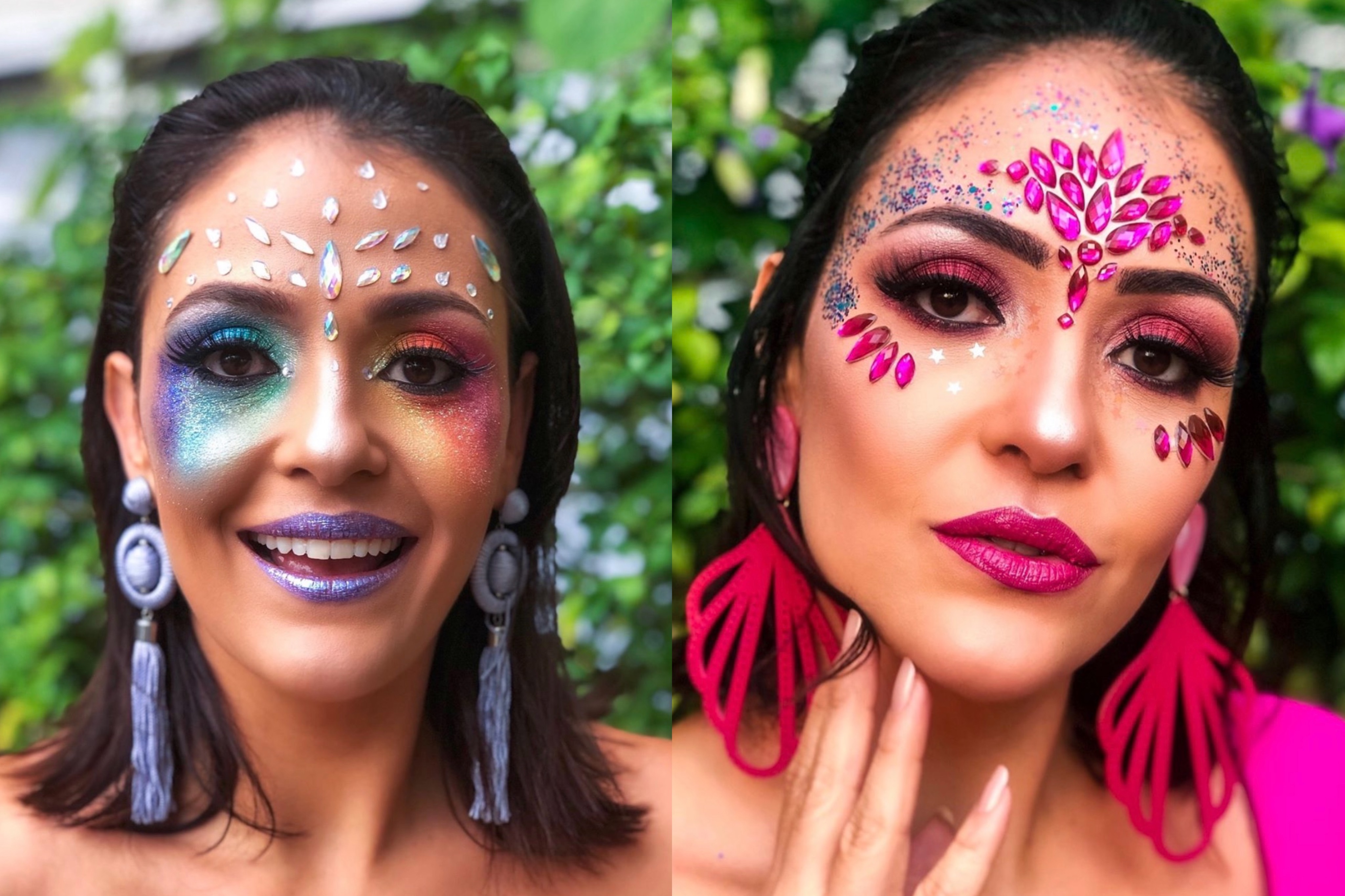 Bem diferente das ocasiões formais, a maquiagem para os dias de folia permite extravasar com tons e traços nada discretos. Segundo a makeup artist Nádia de Zan, a dica para arrasar no Carnaval é apostar nas cores fluorescentes, no delineado e cílios postiços coloridos, além de abusar da pedraria que 2019 é o ano.