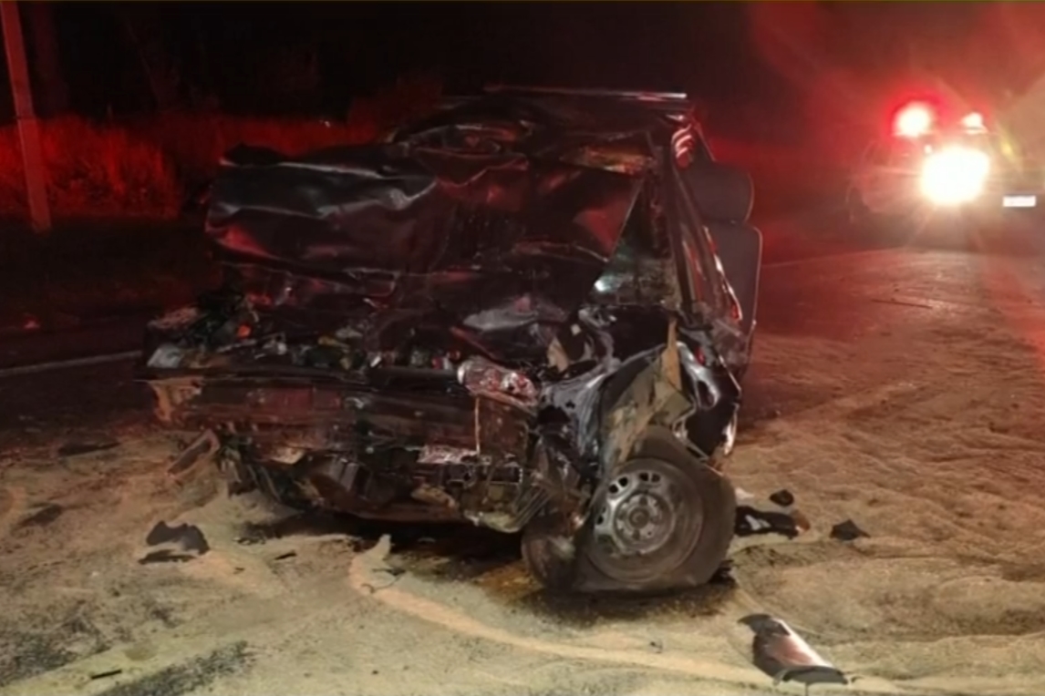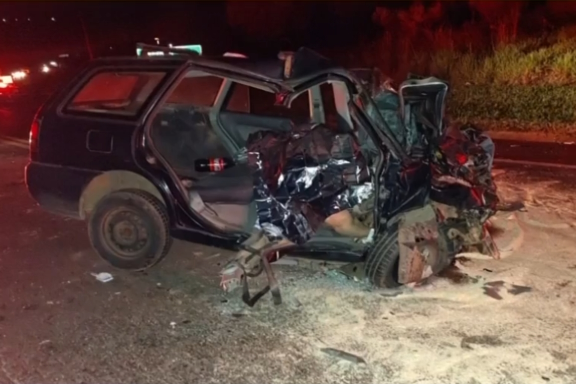 Segundo a Polícia Rodoviária, o carro invadiu a pista contrária e bateu de frente com um caminhão. Estavam cinco pessoas no veículo.