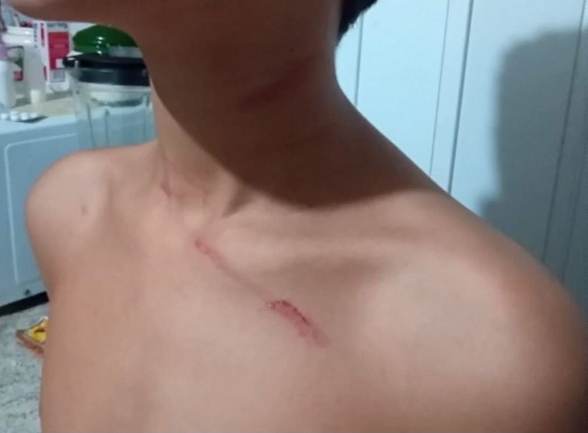 | O menino sofreu ferimentos no pescoço e costas. | Foto: Reprodução |