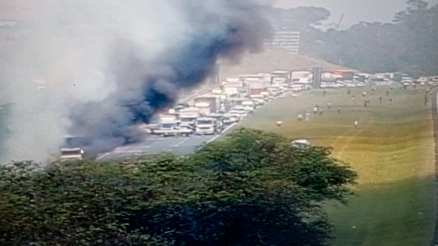 Equipes do bombeiro e concessionária já sinalizaram o fim da fila neste momento.
