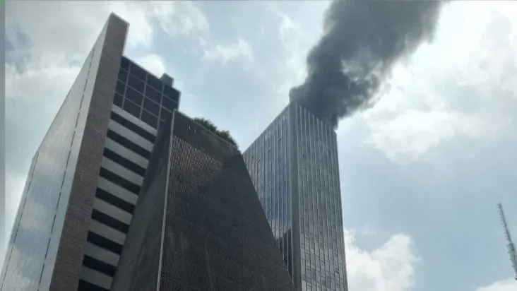 Câmera de segurança da Record TV registrou a fumaça preta saindo do topo do edifício no centro da capital paulista