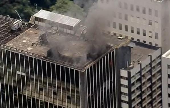 Um incêndio de grandes proporções atinge neste momento um prédio na avenida Paulista, número 1.230, do lado da FIESP, região central de São Paulo-SP, no início da tarde desta quinta-feira (24/2). A câmera de segurança da Record TV registrou a fumaça preta saindo do topo do edifício. O fogo teve início no ar condicionado, e acaba de ser controlado pelos Corpo de Bombeiros.