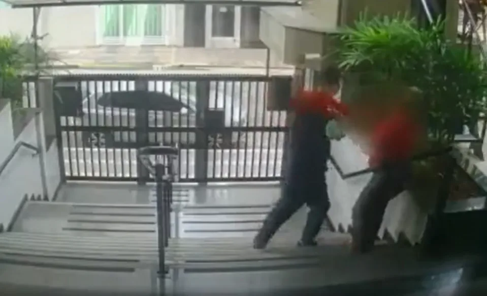 Acuada, a vítima tenta fugir e consegue entrar no saguão do prédio, mas é perseguida e golpeada várias vezes pelo criminoso. Após feri-la, ele então pula o portão e foge, enquanto ela tenta alertar testemunhas sobre o ocorrido.