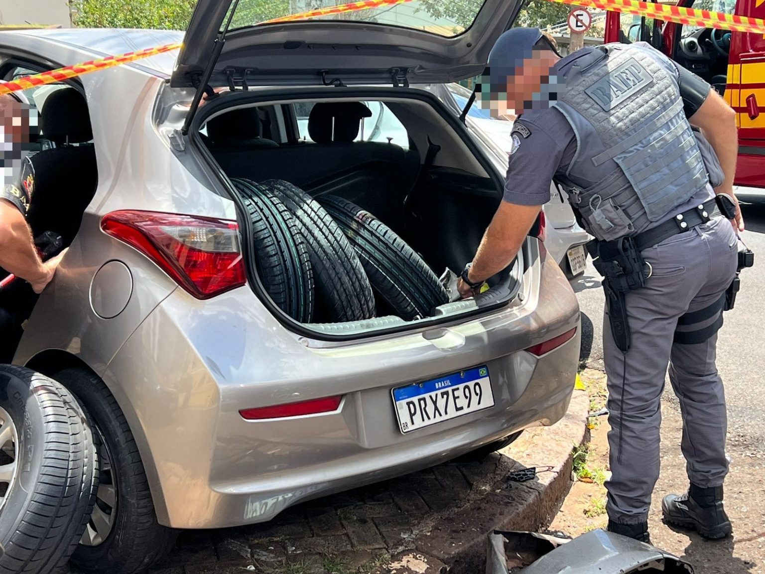 De acordo com a polícia, no porta-malas do hb20, os PMs encontraram quatro estepes de outros veículos. A ocorrência será apresentada na CPJ.