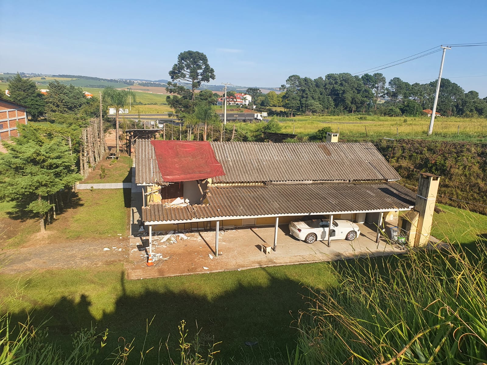 | Telhado da casa onde o carro foi parar, em Ponta Grossa | Foto: RPC Ponta Grossa |