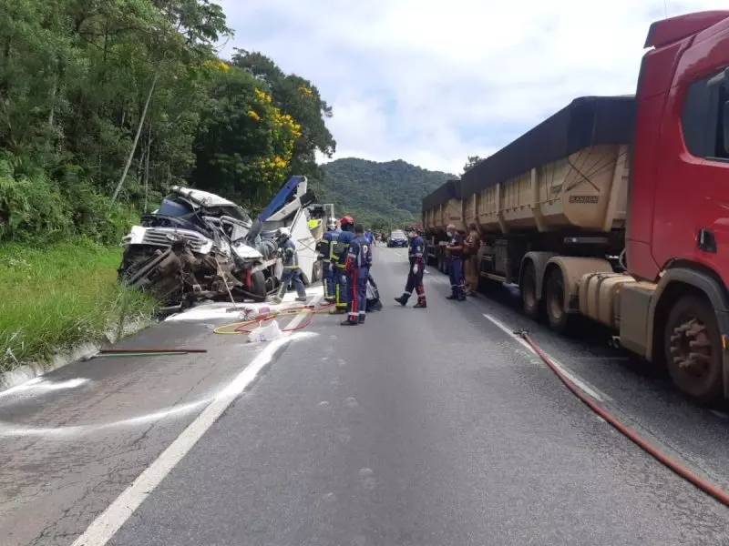 Os bombeiros trabalham no local para fazer o resgate do corpo, que segue preso na cabine, e o IML é aguardado para remover o corpo da vítima. Ainda sem previsão de liberação das pistas no sentido Paranaguá. Já a pista sentido Curitiba não foi afetada e tem tráfego normal.