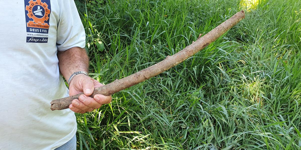 | Pedaço de pau utilizado por Gildo para salvar Tico do ataque da sucuri | Foto: Luiz Aranha/Gazeta do Interior/Colaboração |