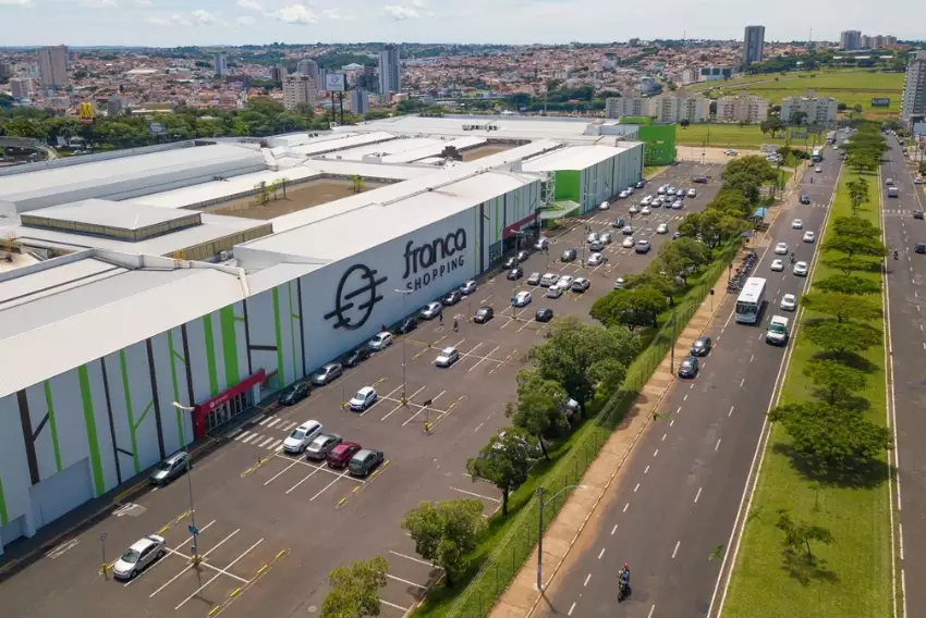 | Visão aérea do prédio e estacionamento do Franca Shopping | Foto: Divulgação |