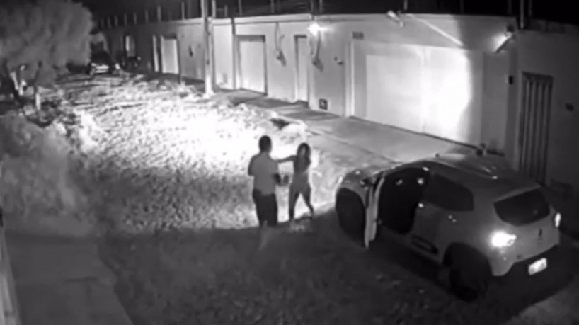 Nas imagens da câmera de segurança a mulher e o condutor apareceram discutindo fora do carro, em frente a uma casa.
