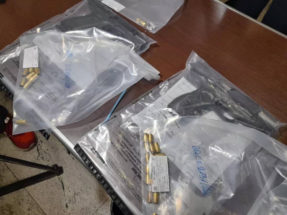 | As armas do assaltante e o do policial militar que defendeu Emerson | Foto: Leonardo Lourenço |