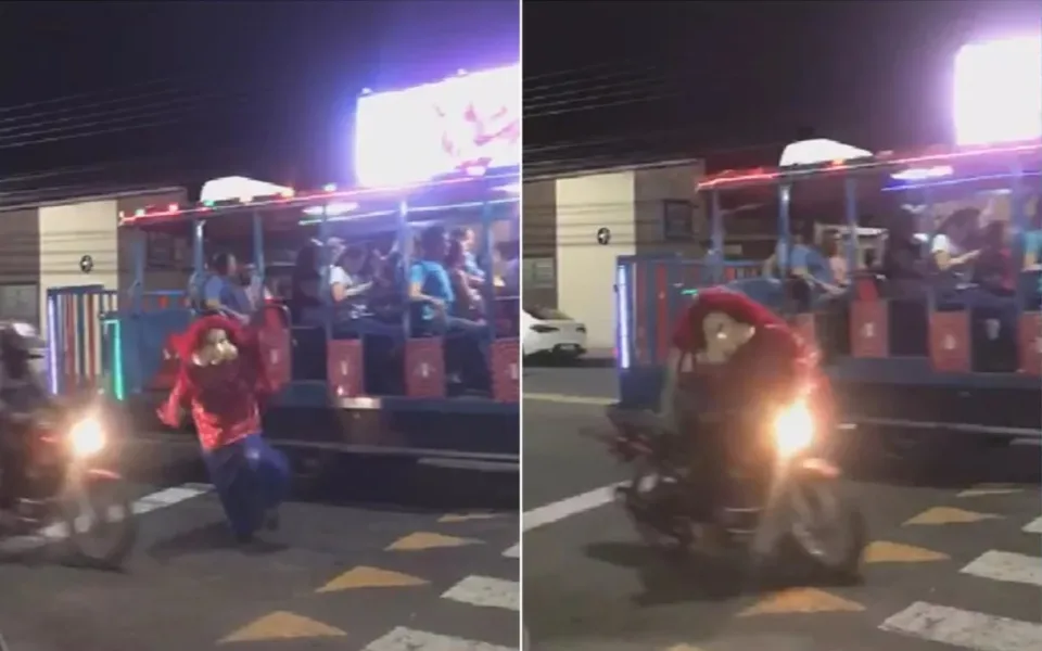Jovem foi atingido por moto ao descer de trenzinho da alegria fantasiado de Fofão em Goiás.