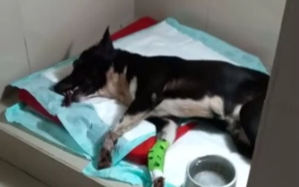 | Cachorro precisou ser hospitalizado após ser agredido a pauladas pelos tutores em Ribeirão Preto-SP | Foto: Reprodução/ Amanda Gonçalves |