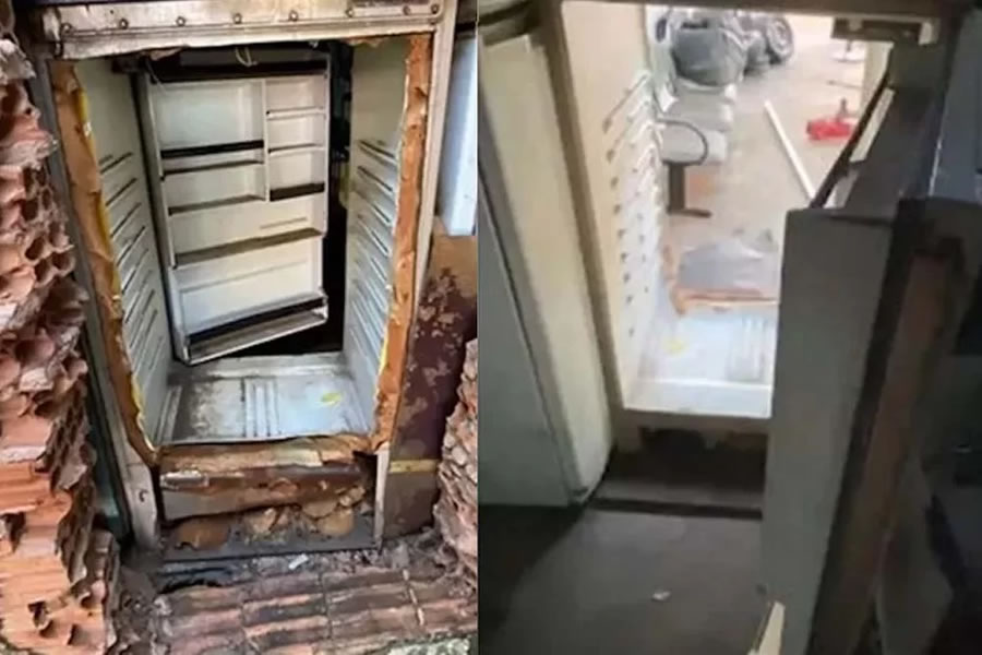 Um vídeo publicado no Twitter, mostra o interior da oficina e ainda revela que a geladeira parecia normal, porém, ao abrir a porta, o eletrodoméstico não tem fundo e, na verdade, era usado para esconder a passagem entre os dois imóveis.