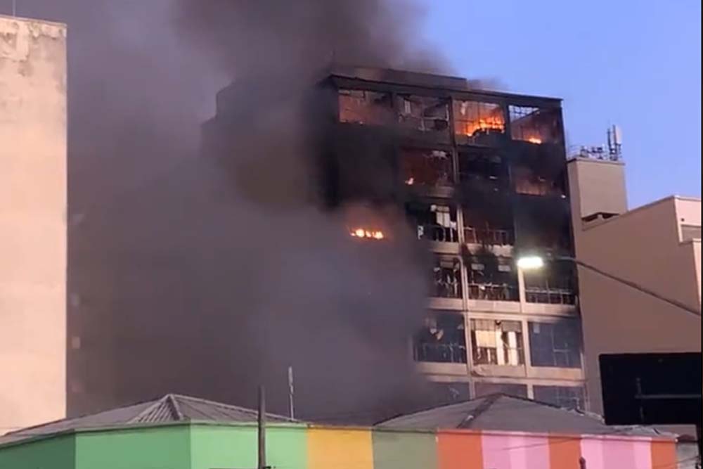 O fogo teria começado na área térrea de um prédio de dez andares e rapidamente atingiu outros três imóveis, sendo eles, uma loja, que ficou totalmente destruída, um prédio de seis andares, que corre risco de desabar e uma igreja.