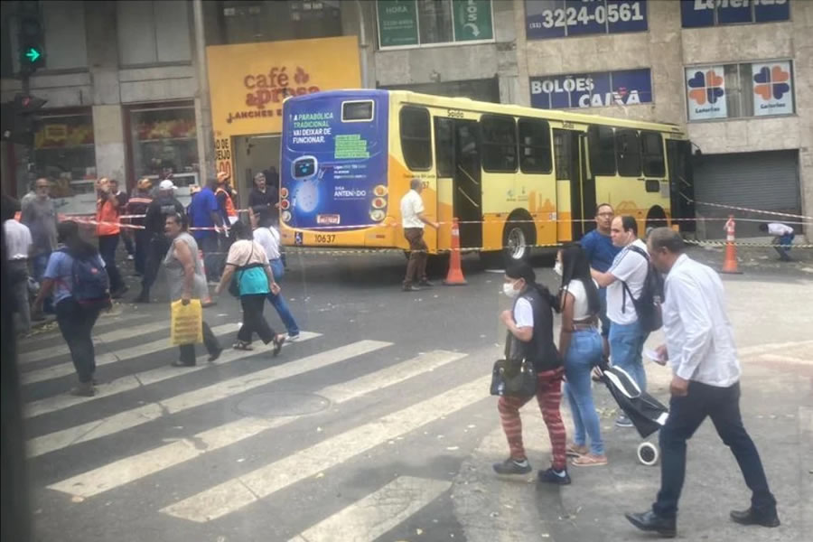 Um ônibus bateu em uma lotérica no edifício Acaiaca, na esquina da rua dos Tamóios com a avenida Afonso Pena, na manhã desta quinta-feira (15/9), no Ccntro de Belo Horizonte-MG. As informações são do Metrópoles.