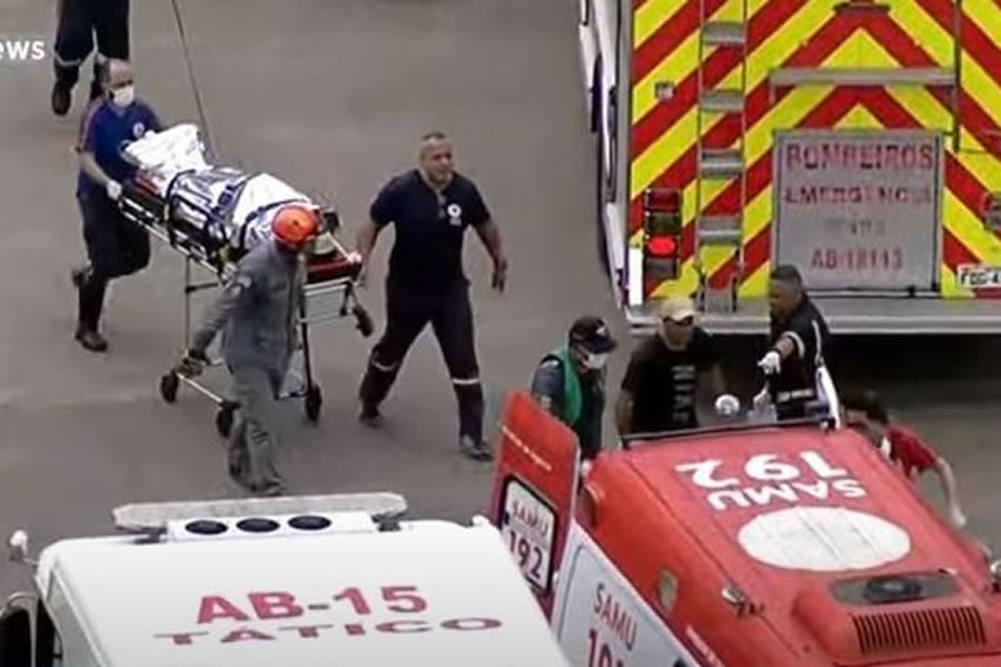 São 78 bombeiros em 19 viaturas atendendo a ocorrência. Dois helicópteros da PM auxiliam no resgate das vítimas