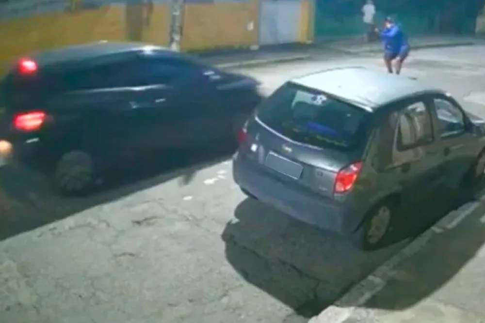 A ação dos criminosos durou 6 segundos, um dos bandidos fica na frente do carro e efetua disparos. Depois, corre com o parceiro e vai embora sem levar nenhum pertence da vítima. Eliane permanece no veículo, que avança e bate contra um poste no fim da rua.