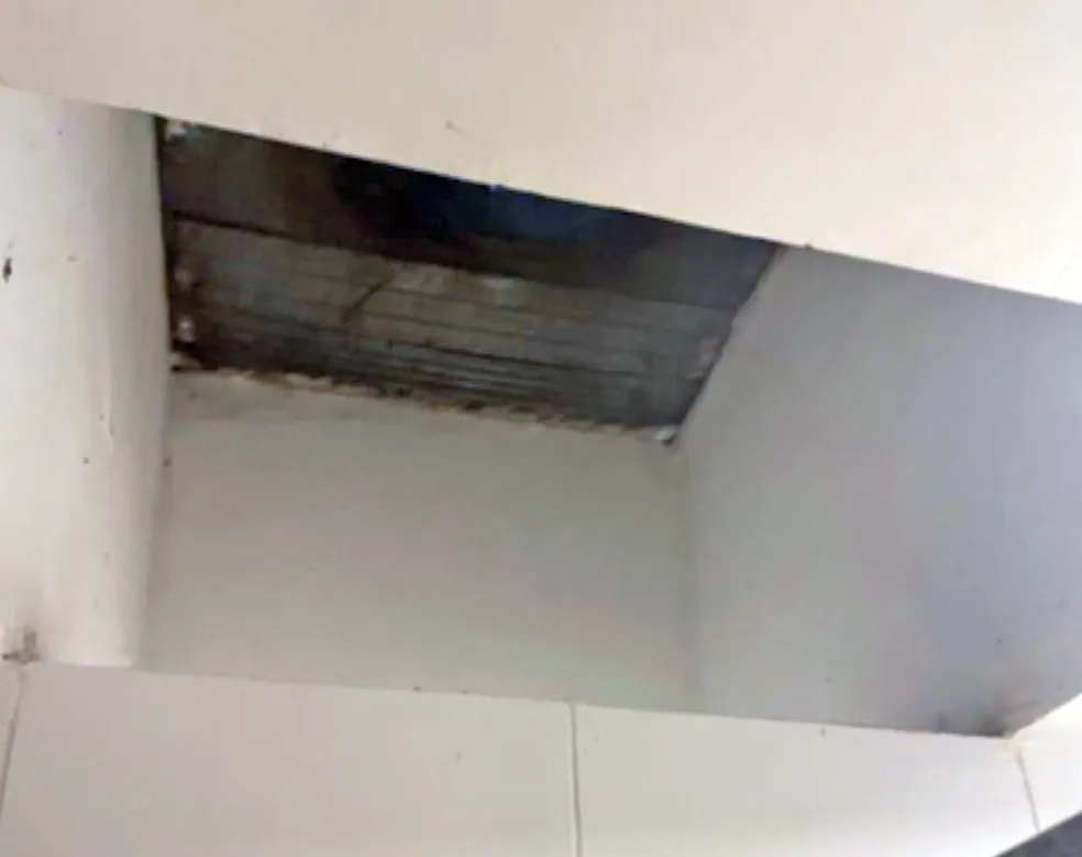 | Teto do banheiro tinha um buraco | Foto: Reprodução |