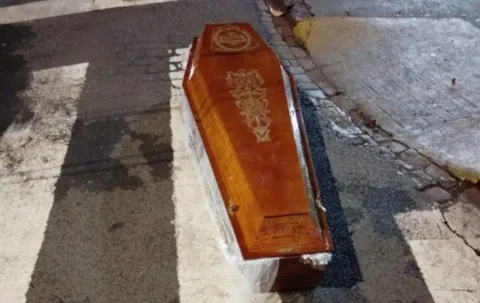 | Dentro da urna havia o corpo de um idoso, que foi atingido por um ônibus após a queda | Foto: Reprodução/ Redes sociais |