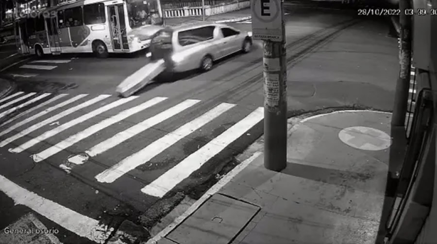 Uma câmera de segurança flagrou o momento em que um caixão com um corpo dentro caiu de um carro funerário na madrugada desta sexta-feira (28/10), no Centro de Ribeirão Preto-SP.