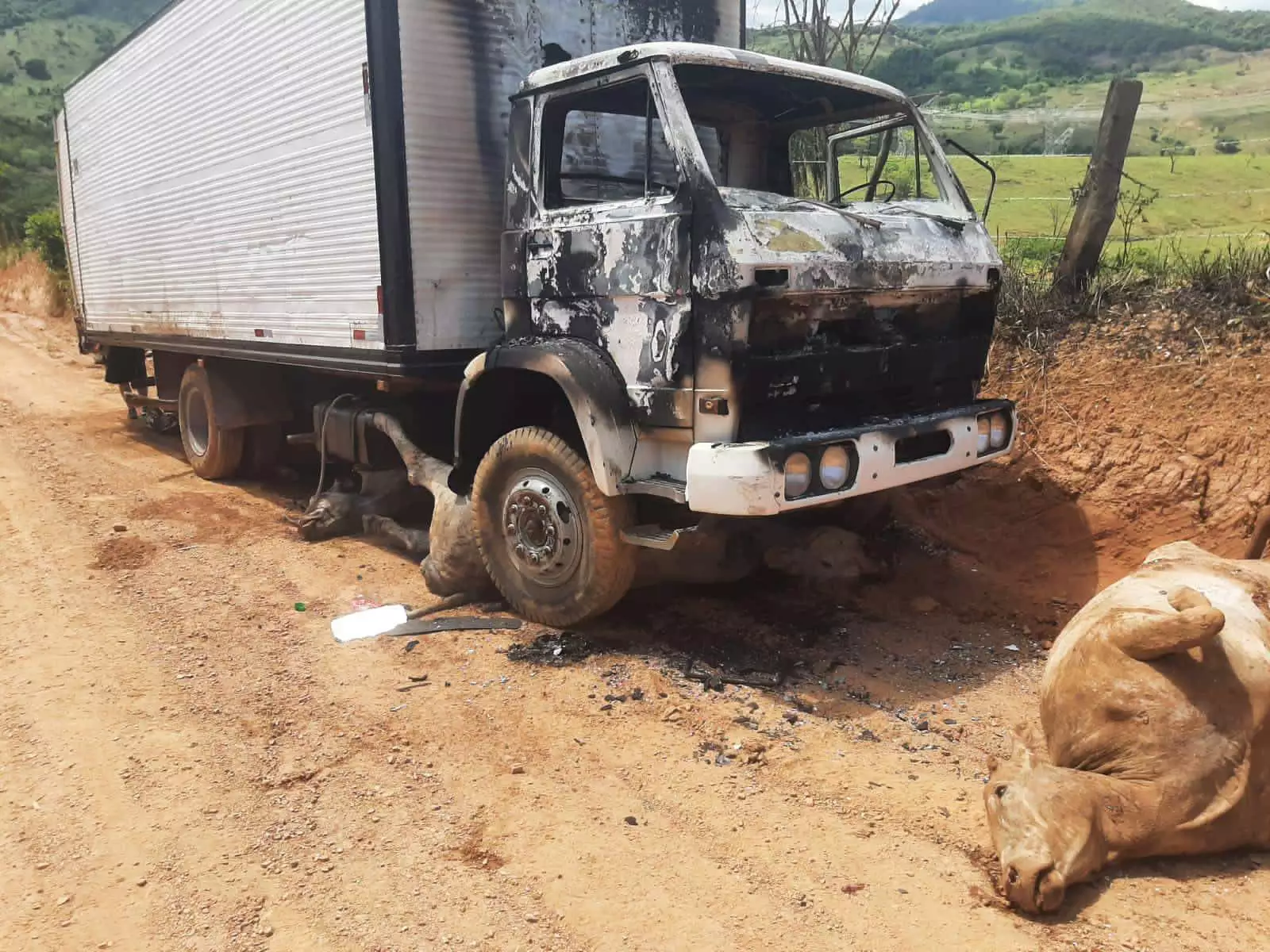 O caminhão encravou por conta do peso e, em uma atitude covarde, os criminosos colocaram fogo no veículo com os animais dentro. Em um vídeo encaminhado ao portal GCN, é possível ver ao menos 8 animais queimados e mortos. Uma vaca sobreviveu.