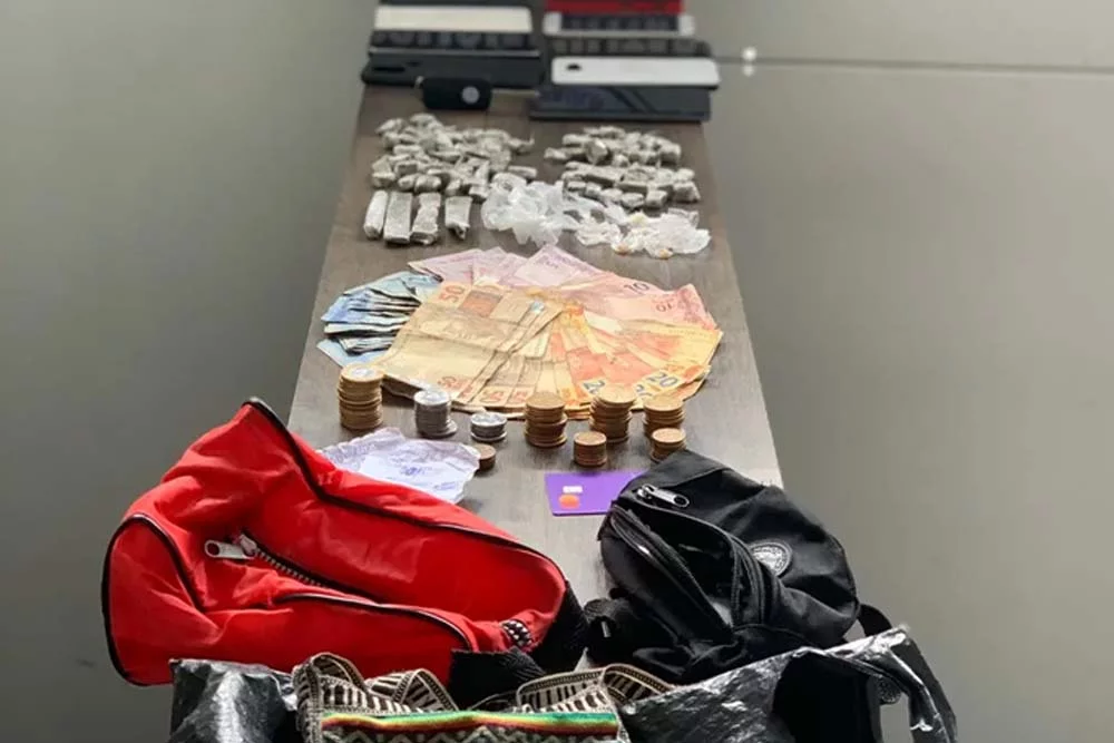 Além do carro também foram apreendidos 86 papelotes de maconha, 17 papelotes de crack, cinco celular, um cartão de banco e R$ 932,40.