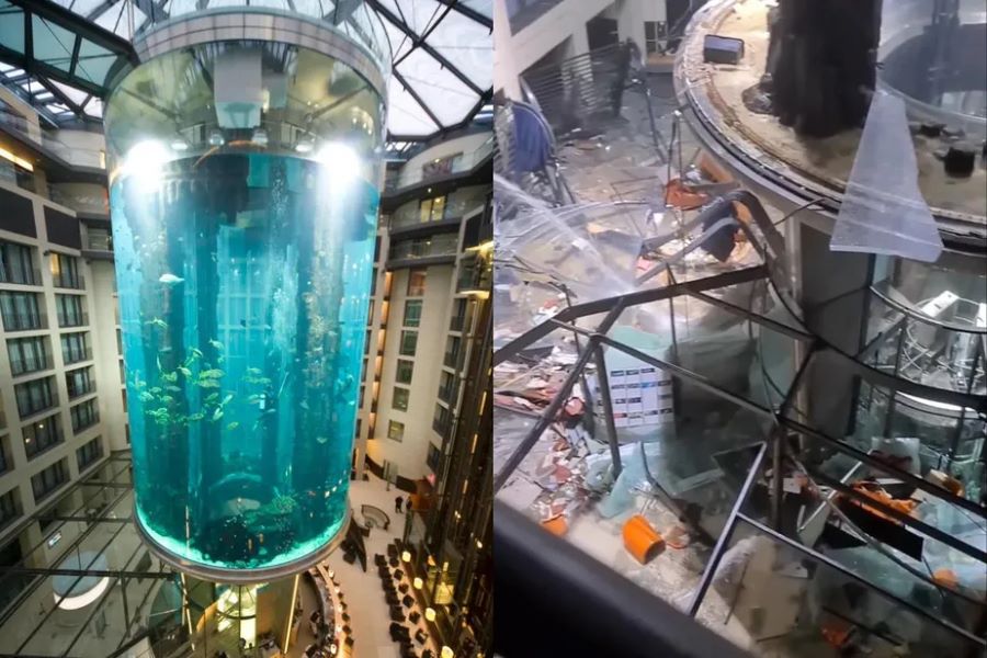 Um aquário gigante contendo um milhão de litros de água explodiu, inundando o hotel onde está localizado e as ruas próximas, em Berlim, na Alemanha. De acordo com a CNN, o desastre aconteceu na madrugada desta sexta-feira (16/12) e deixou duas pessoas feridas por estilhaços de vidro. A cena foi gravada por várias testemunhas e compartilhada nas redes sociais.