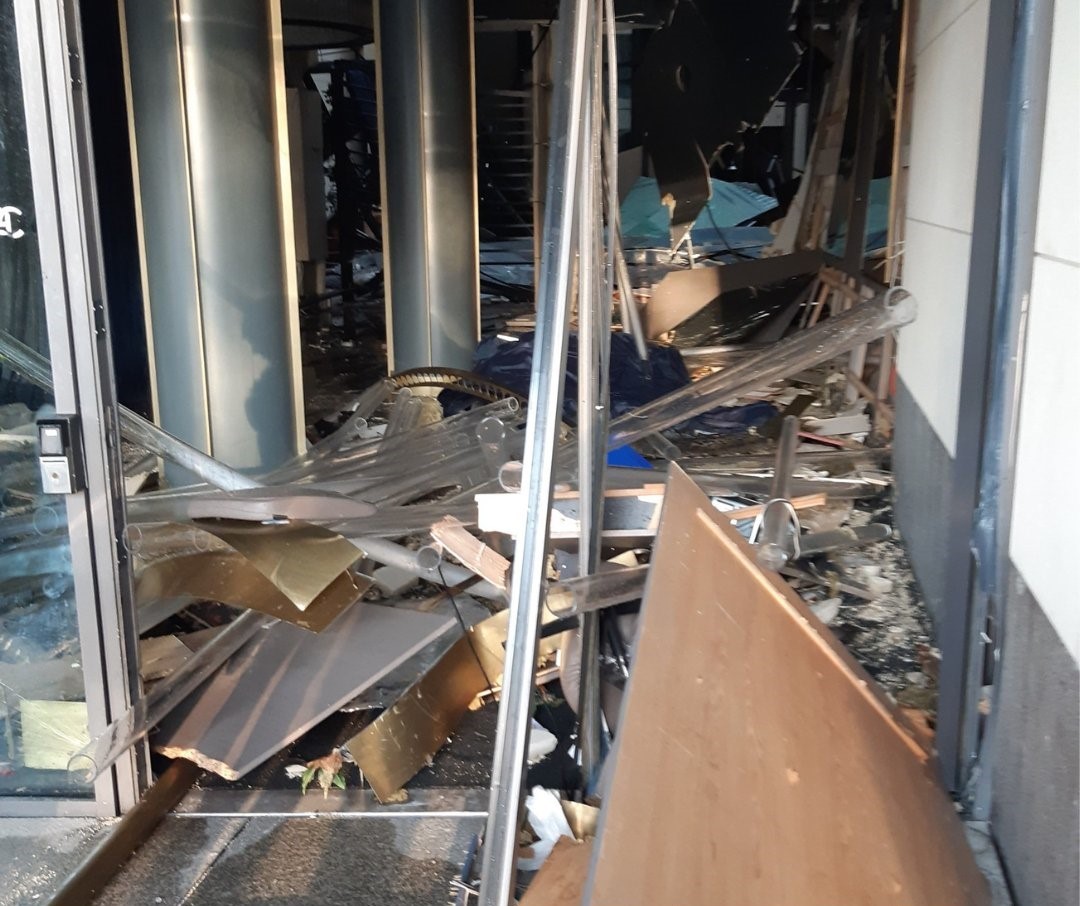 O Corpo de Bombeiros informou que a pressão da explosão destruiu não apenas o átrio do hotel, como também portas e janelas, fazendo com que os destroços se espalhassem pelas ruas. Por causa do imenso volume de água, as ruas ao redor do Radisson Blue ficaram alagadas e vários estabelecimentos próximos tiveram que ser interditados.