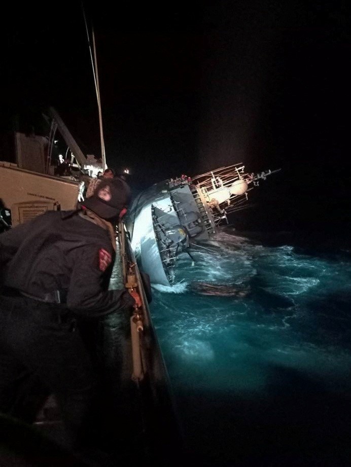 Imagens divulgadas pela Marinha mostram o Sukhothai a quase 60 graus em relação à água, seguindo-se a submersão total.