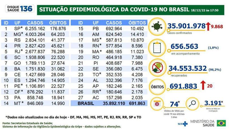 | Boletim covid-19 de 18/12/2022 - Ministério da Saúde |