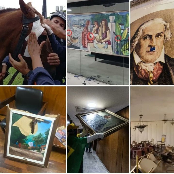 | Obras de arte são destruídas pelos manifestantes | Foto: Reprodução/ Redes sociais |