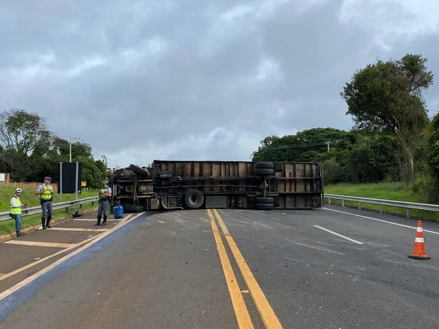 Após o caminhão tombar, outro veículo que seguia logo atrás não conseguiu frear a tempo e também se envolveu no acidente, porém, o motorista não ficou ferido. O trânsito precisou ser interditado nos dois sentidos da rodovia.