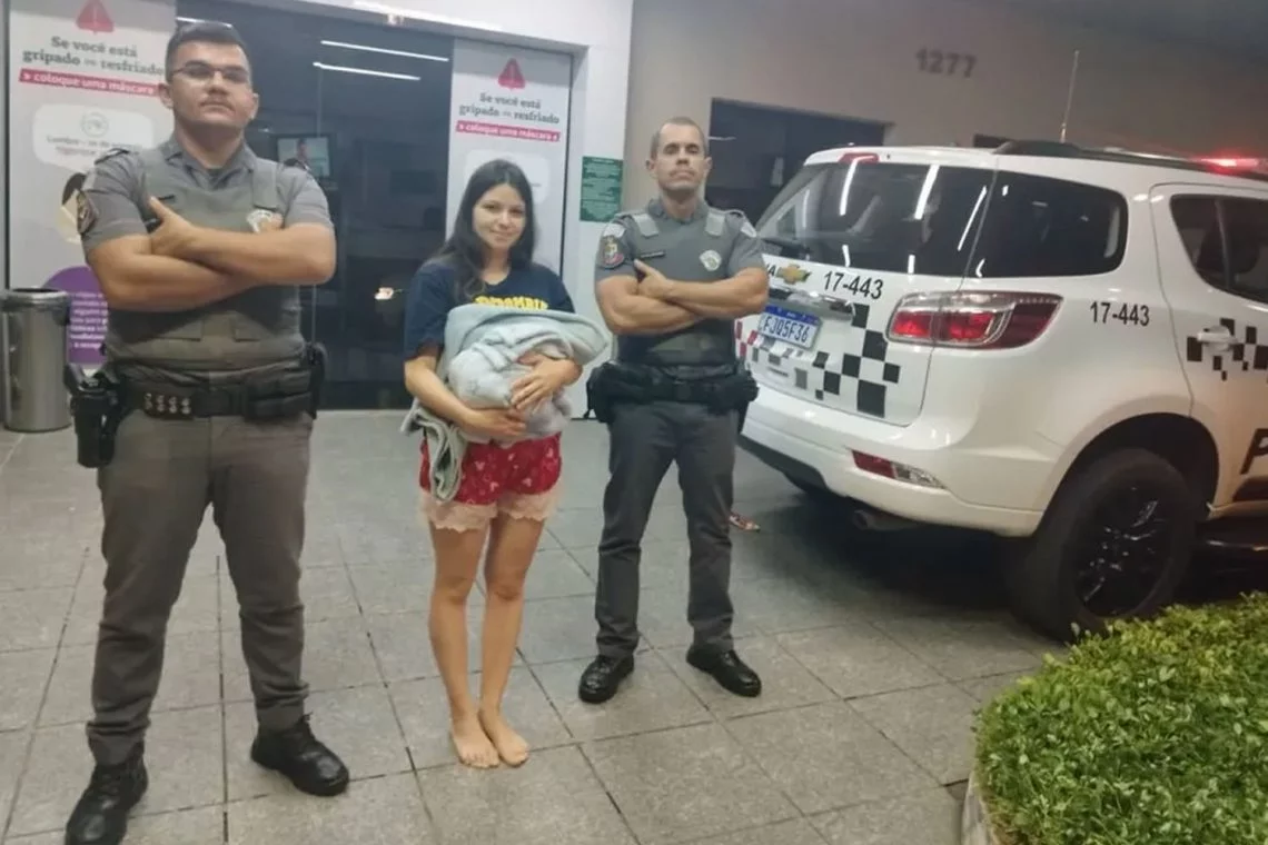 | Policiais militares salvam recém-nascido engasgado em Rio Claro | Foto: Polícia Militar/Divulgação |