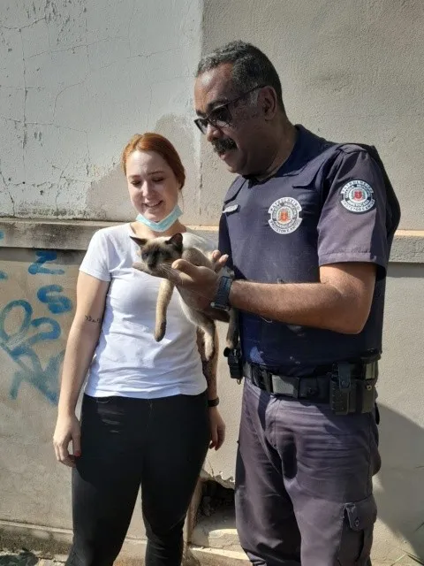 | Gato preso dentro de muro é resgatado pela GM em Americana | Foto: GM/Divulgação |