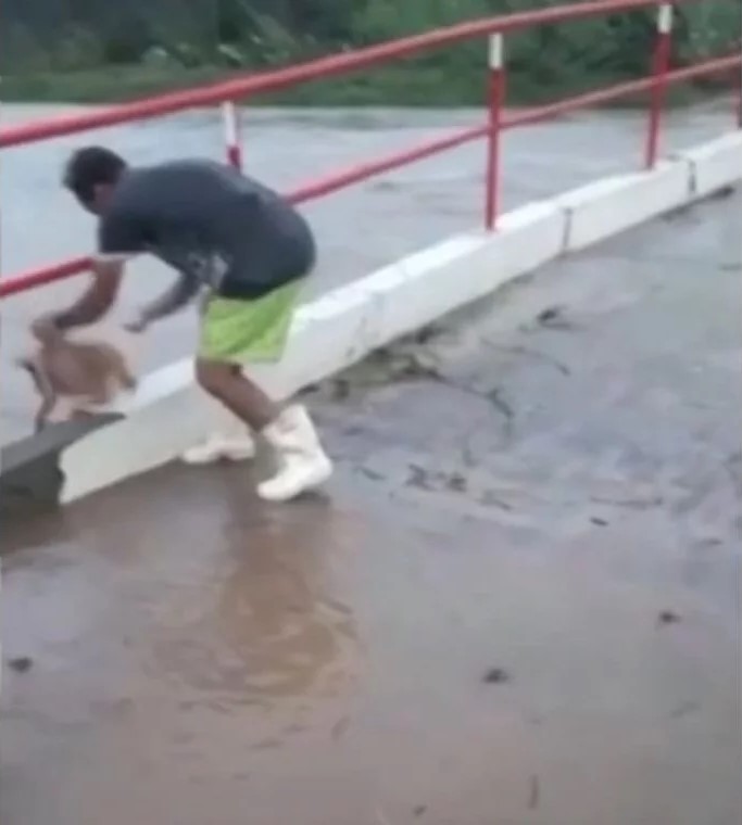 Um motorista que passava pelo local, parou para filmar a situação da estrutura da ponte após uma chuva forte que foi registrada no sertão. Durante a filmagem aparece um homem que segura o cachorro e sem motivo algum, arremessa o animal no rio que foi levado pela correnteza. O vídeo circulou nas redes sociais.
