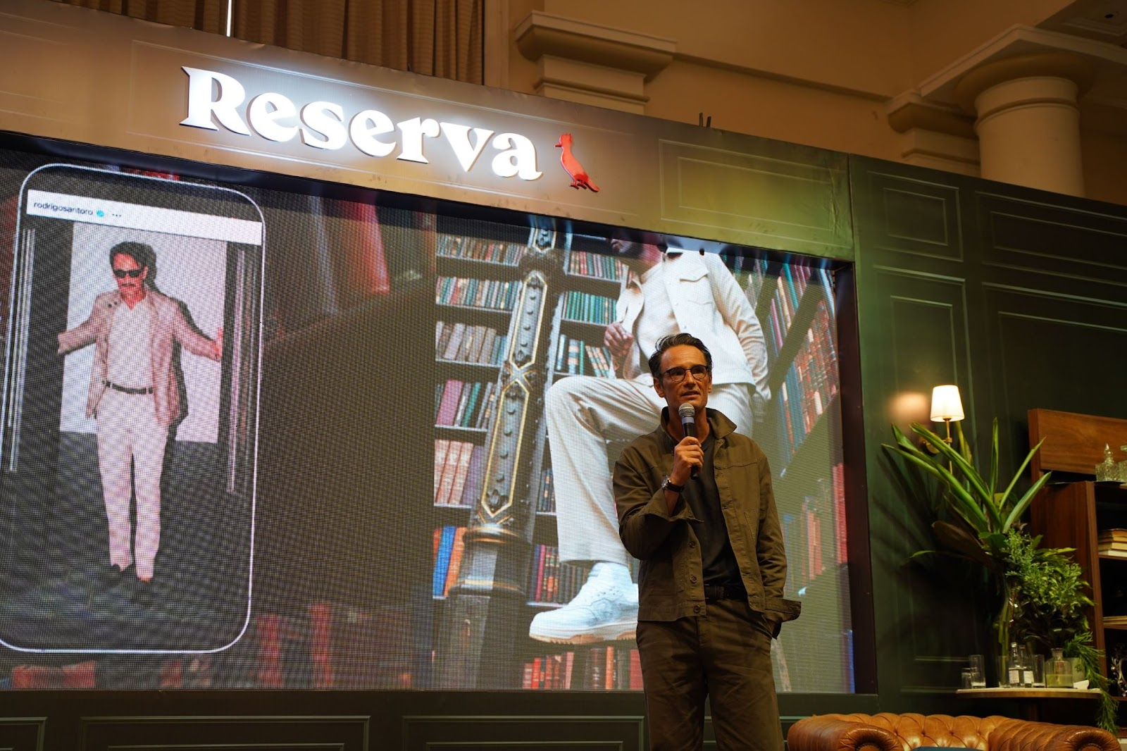Rodrigo Santoro subiu ao palco para reforçar a relevância da marca no cenário da moda masculina brasileira. Em seu discurso, destacou o compromisso da Reserva em cuidar, emocionar e surpreender diariamente, além de valorizar iniciativas sociais e sustentáveis que fazem parte do DNA da empresa, como o programa 1P5P, que viabiliza cinco pratos de comida a cada peça vendida.