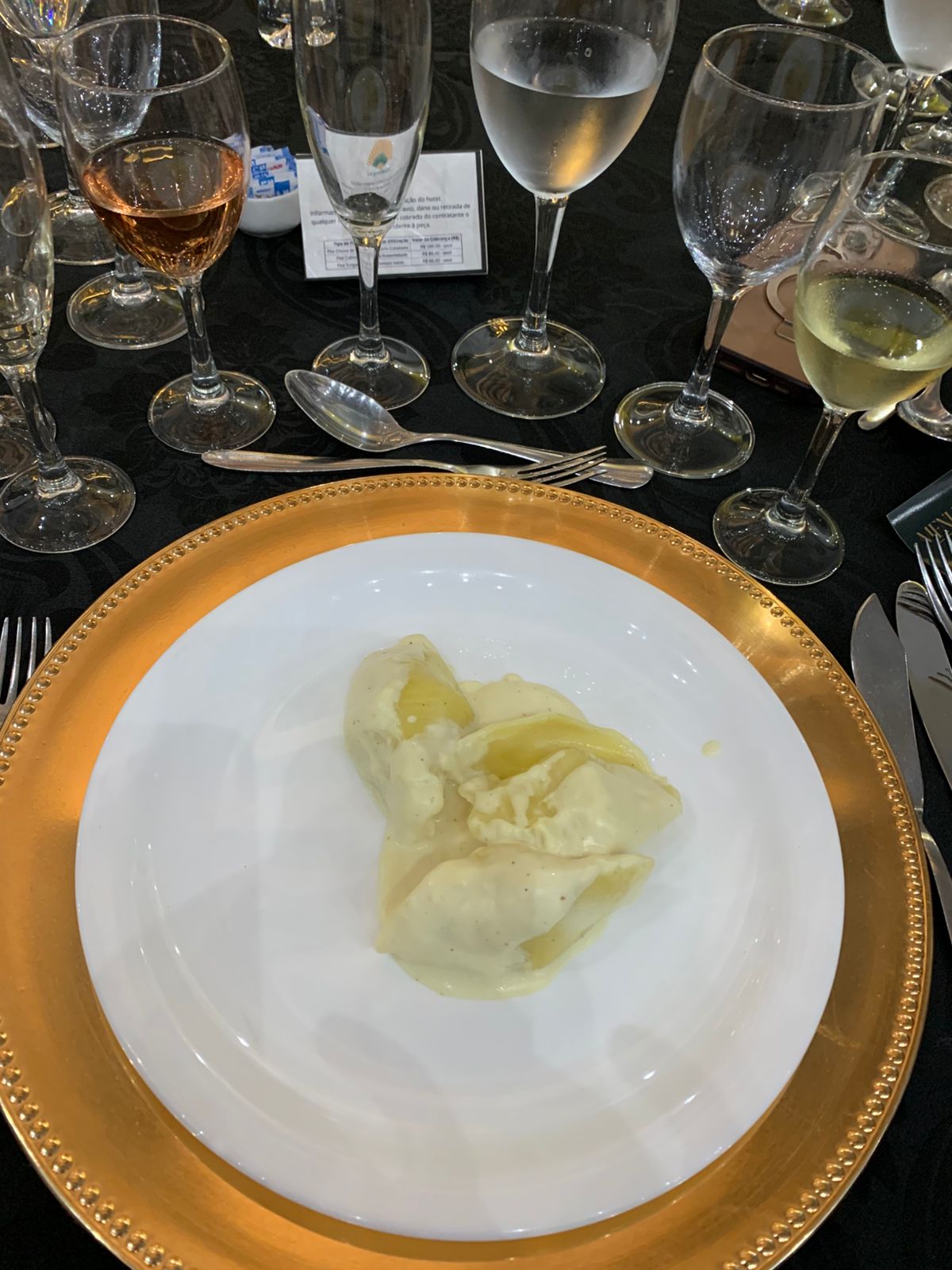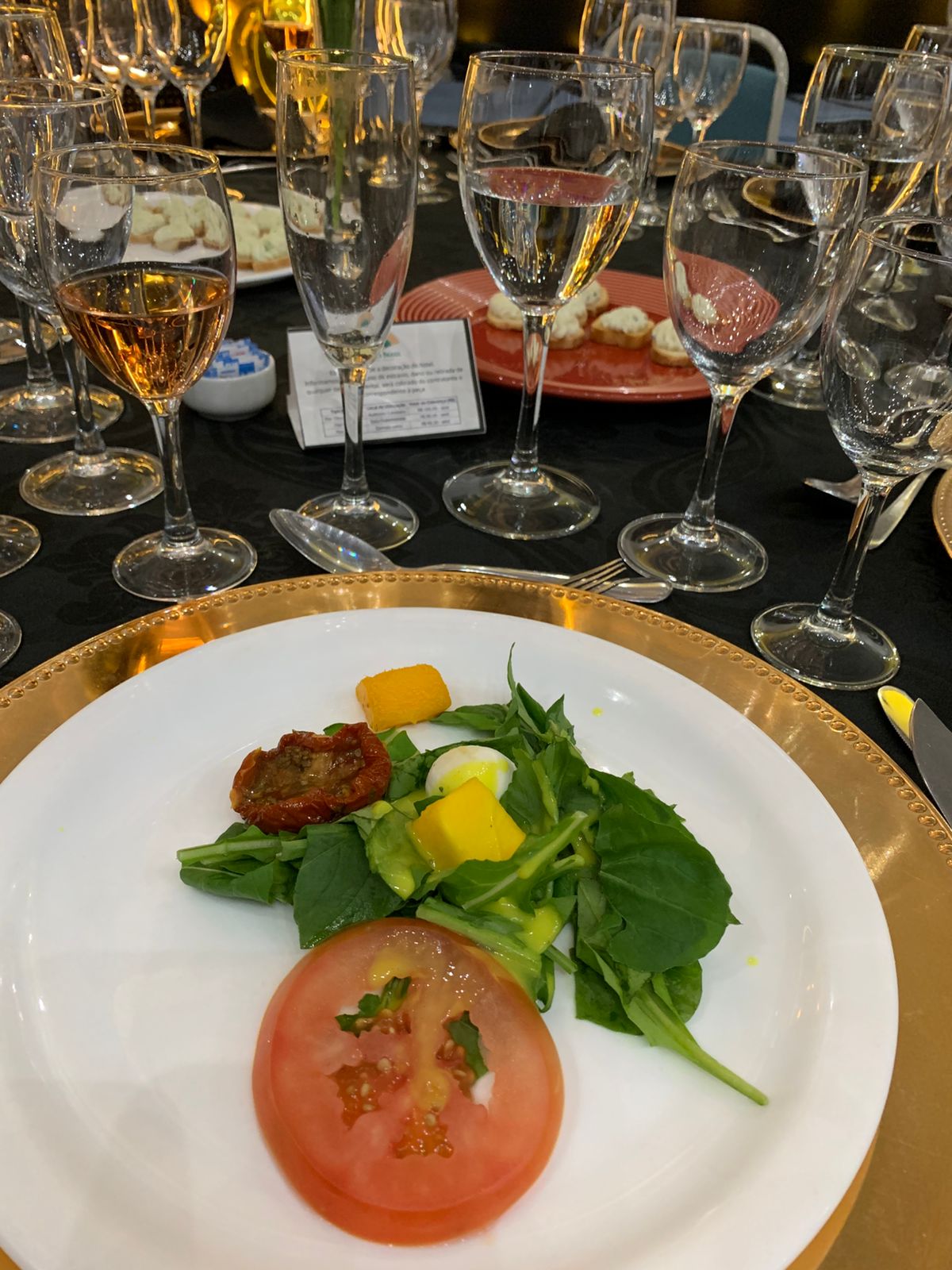 Logo na recepção, o Brut Método Tradicional Mayos foi servido com canapés de ervas finas e queijo — uma combinação simples, porém precisa para despertar os sentidos. Em seguida, as harmonizações seguiram como um desfile de sotaques vinícolas cuidadosamente coreografados entre Portugal, Brasil e Chile. Entre o frescor do Porta da Ravessa Branco na salada com manga confitada e a imponência do Vinhas Velhas Tinto com cordeiro e arroz de ervas, ficou evidente que ali não se tratava apenas de servir vinhos — mas de contar uma história através deles.