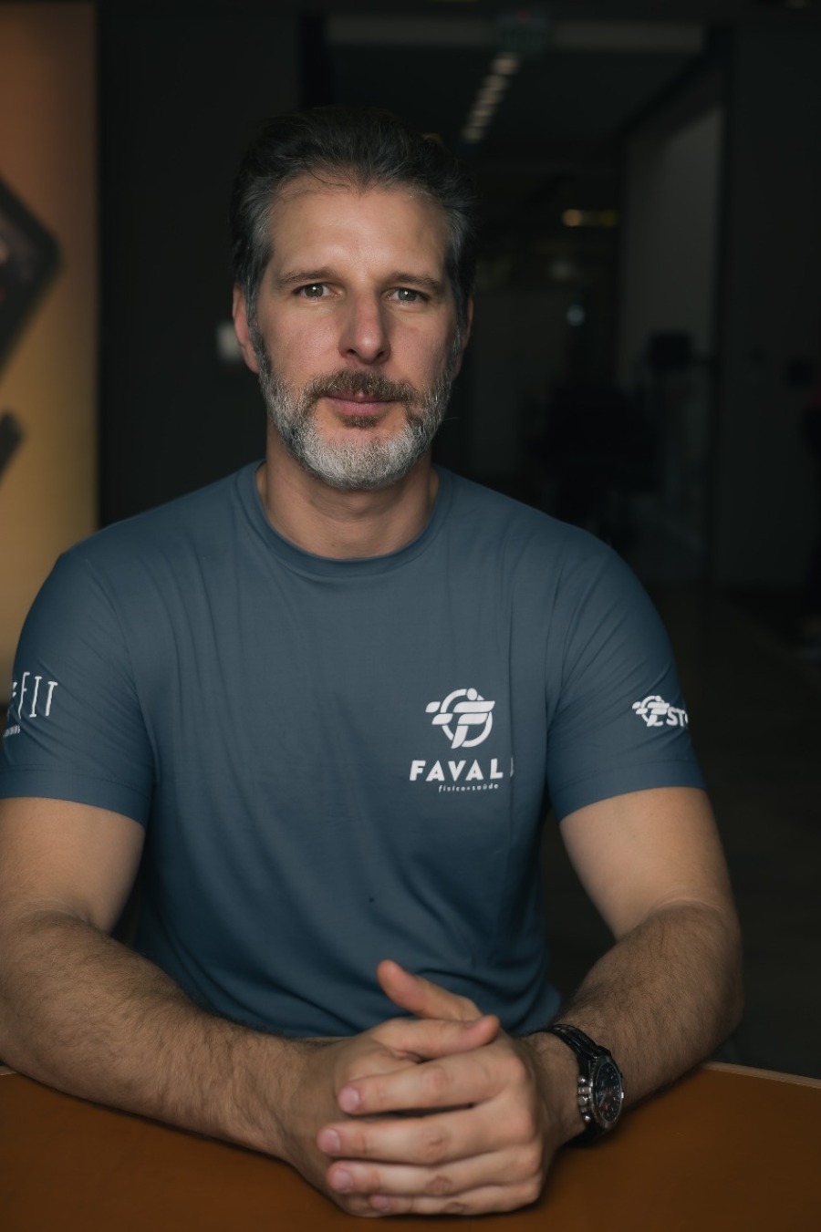 Com formação em Educação Física e pós-graduações em Fisiologia do Exercício (UNIFESP) e Biomecânica (UGF), Favale reuniu sua trajetória acadêmica e prática em torno do Treinamento da Consciência Física, descrito em livro homônimo, que combina reeducação postural, fortalecimento, mobilidade articular e acompanhamento próximo. O time conta com fisioterapeutas e utiliza técnicas próprias como a liberação miofascial quando indicado. Em vez de protocolos engessados, há um processo adaptativo: cada sessão observa resposta de dor, percepção de esforço e função nas 24–48 horas seguintes, ajustando cargas e exercícios com precisão.