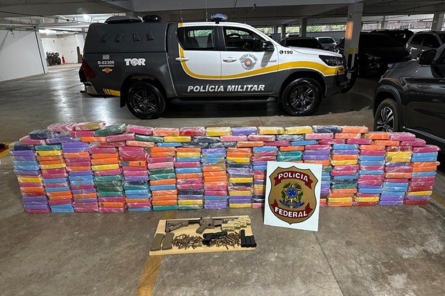 O motorista foi preso em flagrante e conduzido à Polícia Federal em Marília/SP, onde foi lavrado auto de prisão em flagrante pelos crimes de tráfico internacional de drogas e porte ilegal de arma de fogo de uso restrito. Ele permanece à disposição da Justiça.