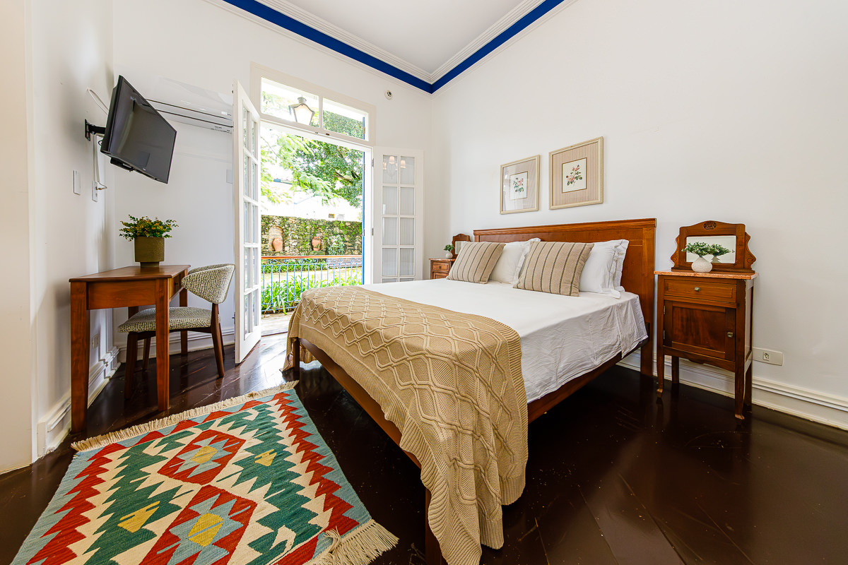 A proposta nasceu de forma artesanal: móveis de antiquário foram reunidos de diferentes regiões e épocas, criando uma identidade única. Cada quarto ganhou decoração própria, com peças históricas que remetem ao passado e reforçam o charme da arquitetura colonial.