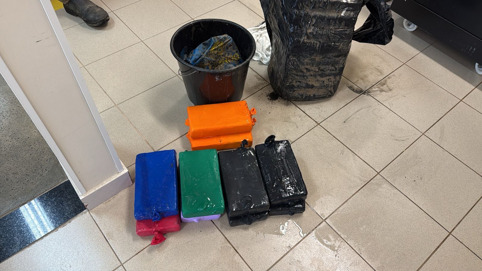 A droga foi localizada após a identificação de material suspeito no casco da tubulação de refrigeração. O material ilícito foi retirado e submetido a testes preliminares que indicaram tratar-se de cocaína.