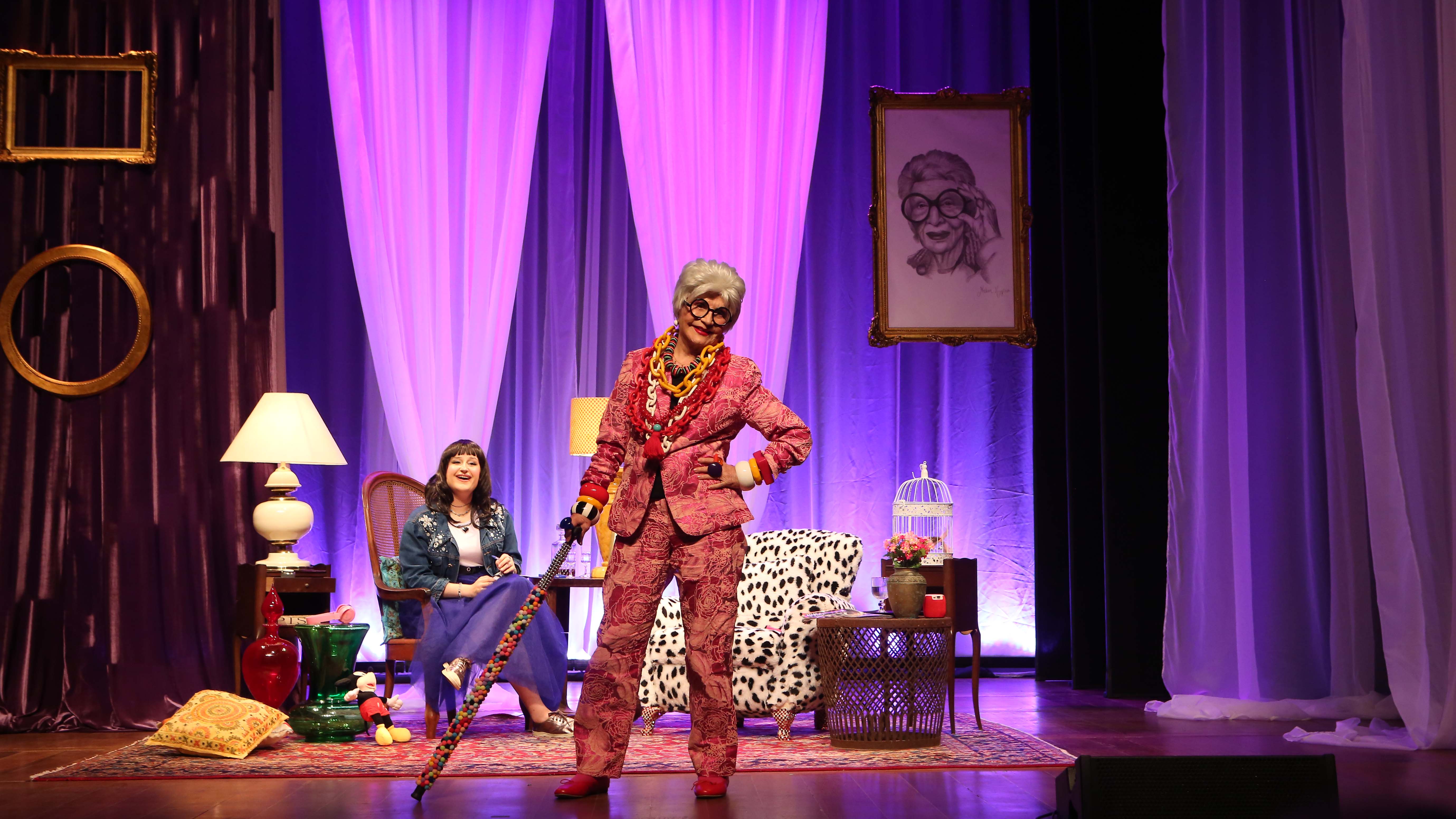 A dramaturgia mistura ficção e memória afetiva, incorporando episódios reais da trajetória de Iris, inclusive sua relação de 68 anos com o marido, Carl Apfel. No palco, o encontro entre Rosamaria e Sofia ultrapassa o texto. A relação real entre avó e neta adiciona uma camada de autenticidade à narrativa e reforça o eixo central da obra: a troca entre gerações.