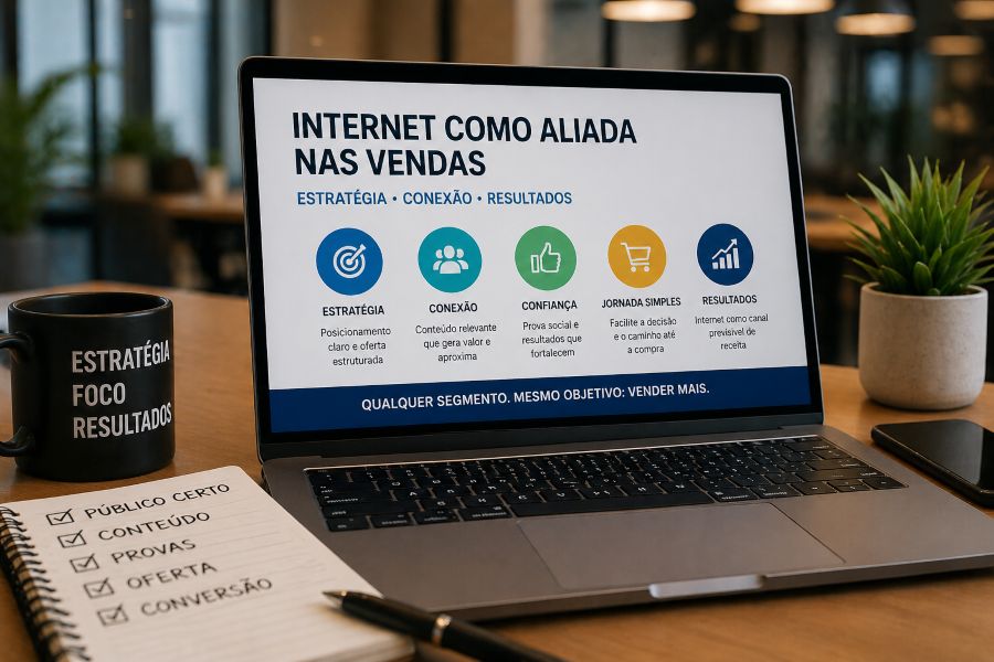 Empresas que querem vender mais na web precisam entender uma coisa básica: presença não é estratégia. Estar online não garante vendas — o que gera resultado é posicionamento claro, oferta bem estruturada e consistência na comunicação. Quem domina isso transforma a internet em um canal previsível de receita.